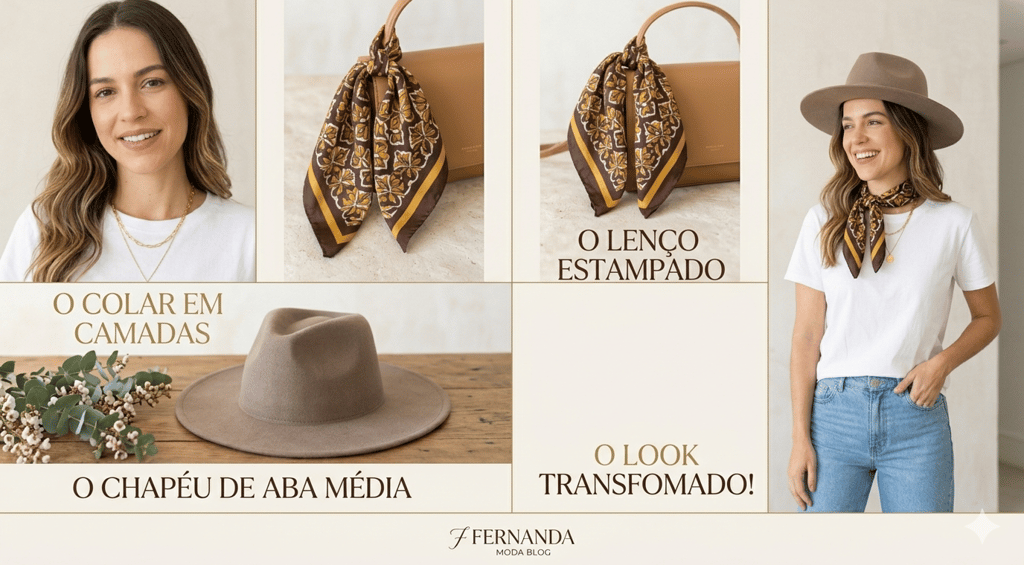 A gente sabe: a correria do dia a dia pede roupas confortáveis. E, muitas vezes, acabamos caindo no combo "jeans + camiseta branca" (que eu amo, inclusive!). Mas a grande diferença entre um look "OK" e um look "UAU" está nos acessórios. Hoje, vou te mostrar como 3 itens estratégicos transformam qualquer produção básica em algo cheio de personalidade e estilo. Prepare-se para multiplicar as possibilidades do seu guarda-roupa!